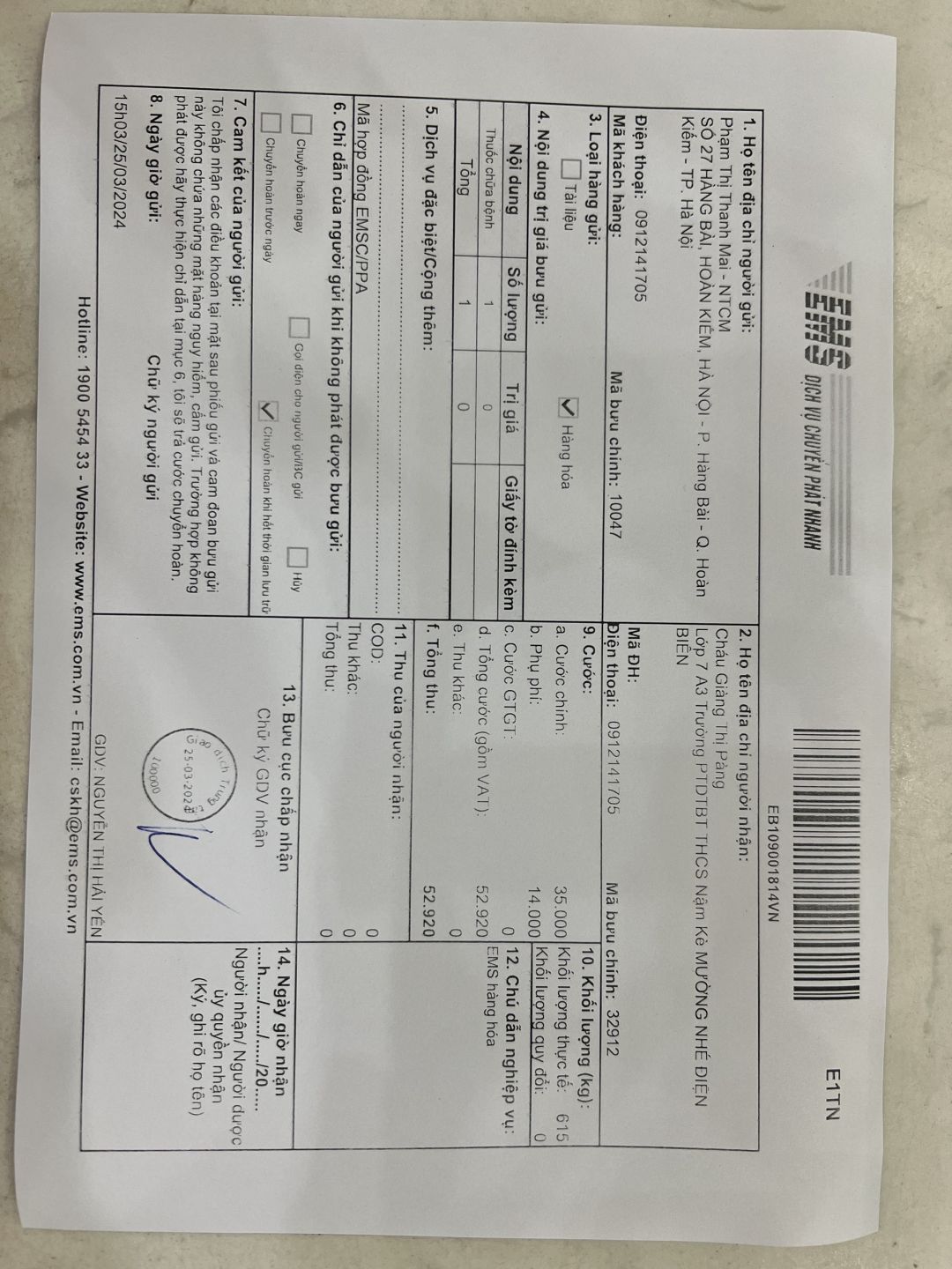Em Hạnh (bạn của Hương): 1.200.000đ
