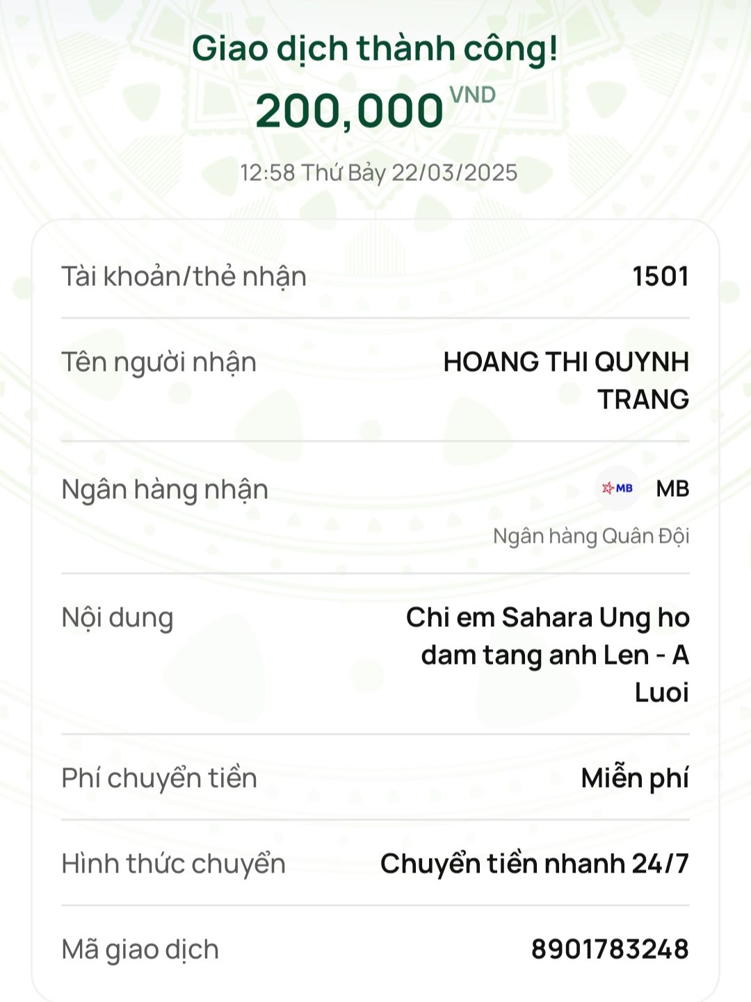 Chị em nhà @sahara gửi lời chia buồn cùng Gia đình anh A Viết Lên cũng như ủng hộ đám tang 200,000₫.