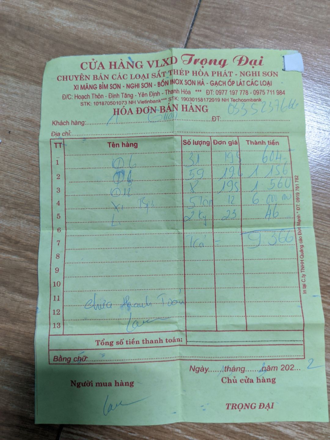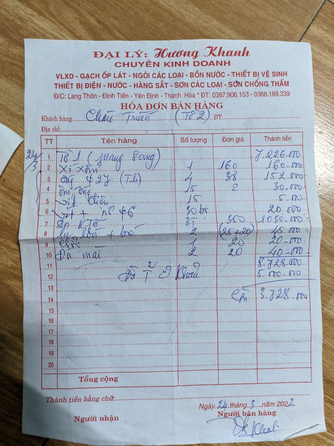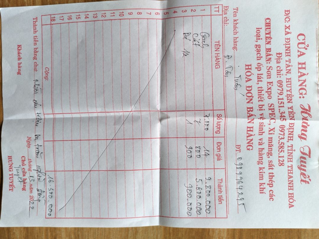 E xin up hình hóa đơn thu chi tổng kết sau chút ạ.