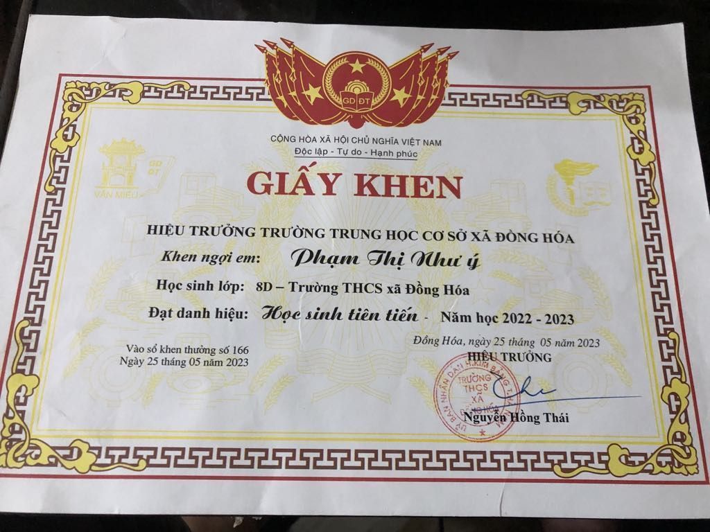 Các cháu vẫn rất chăm ngoan học giỏi các bác ạ. Ngoài bằng khen hs Giỏi thì thì còn các bằng khen của thi cấp trường, huyện, thi chạy ...