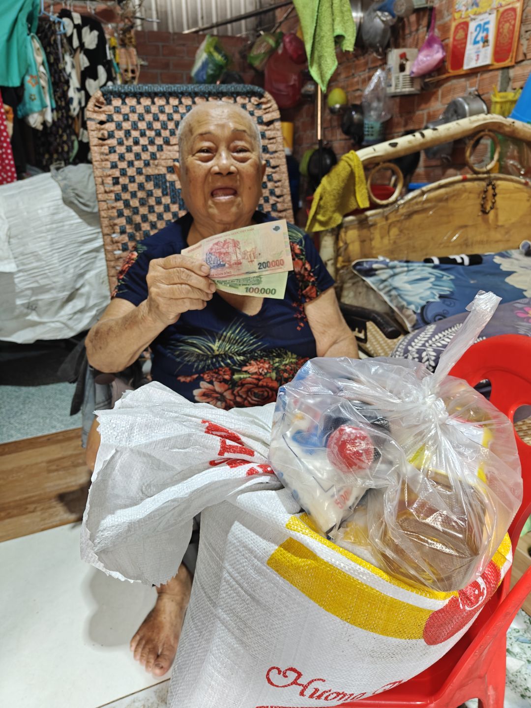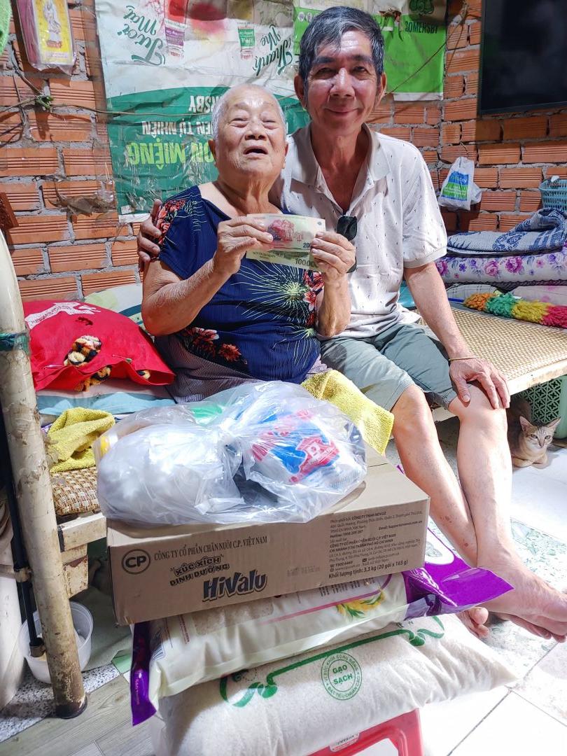 Letuantu cập nhật hình ảnh trao 300,000đ CMTX T6 cho bà Khị kèm gạo & nhu yếu phẩm CMTX T6 + T7.