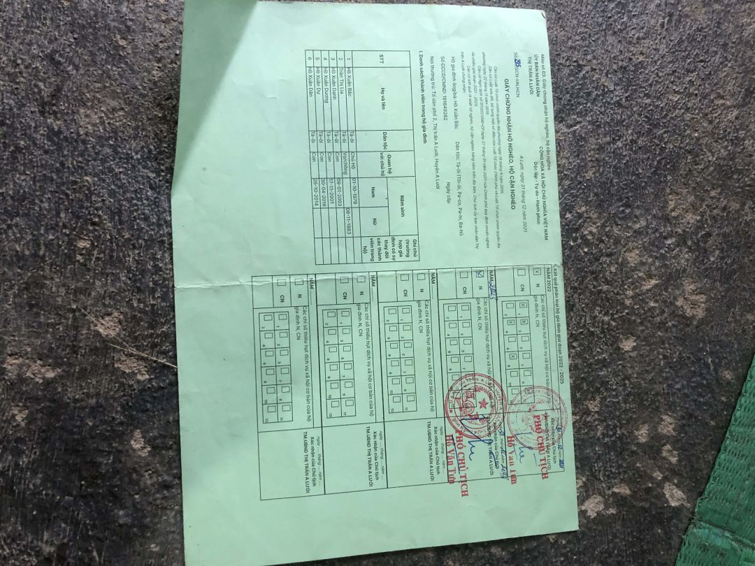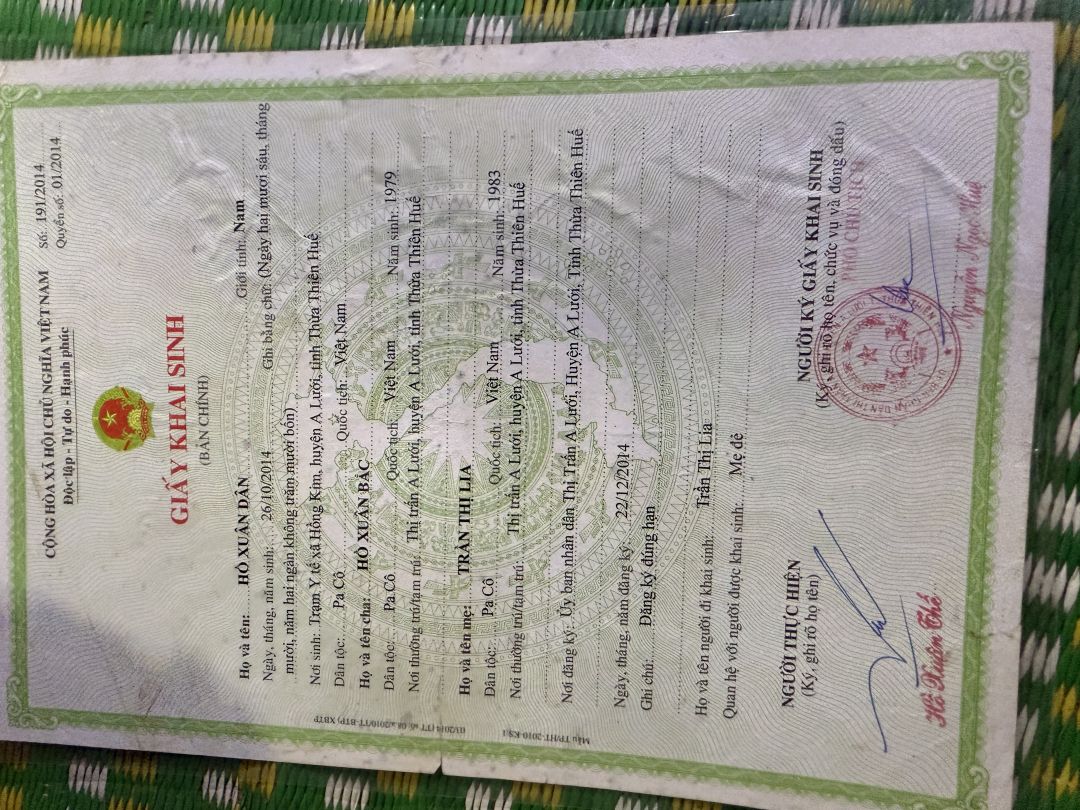 - Hồ Xuân Duân ,5 tuổi, chưa làm hồ sơ khai sinh
