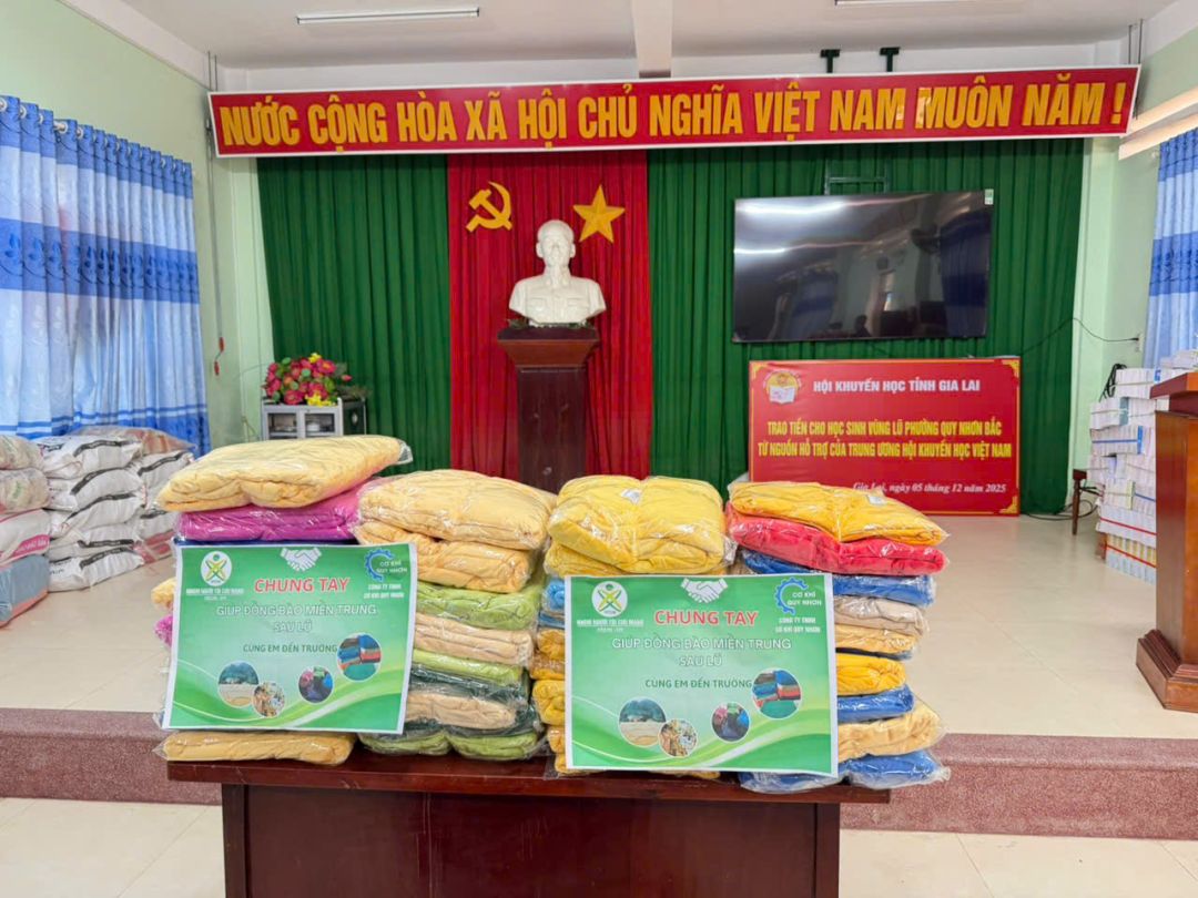 Mong muốn được hỗ trợ : 500 cái mền + tập vở 1,000 cuốn .