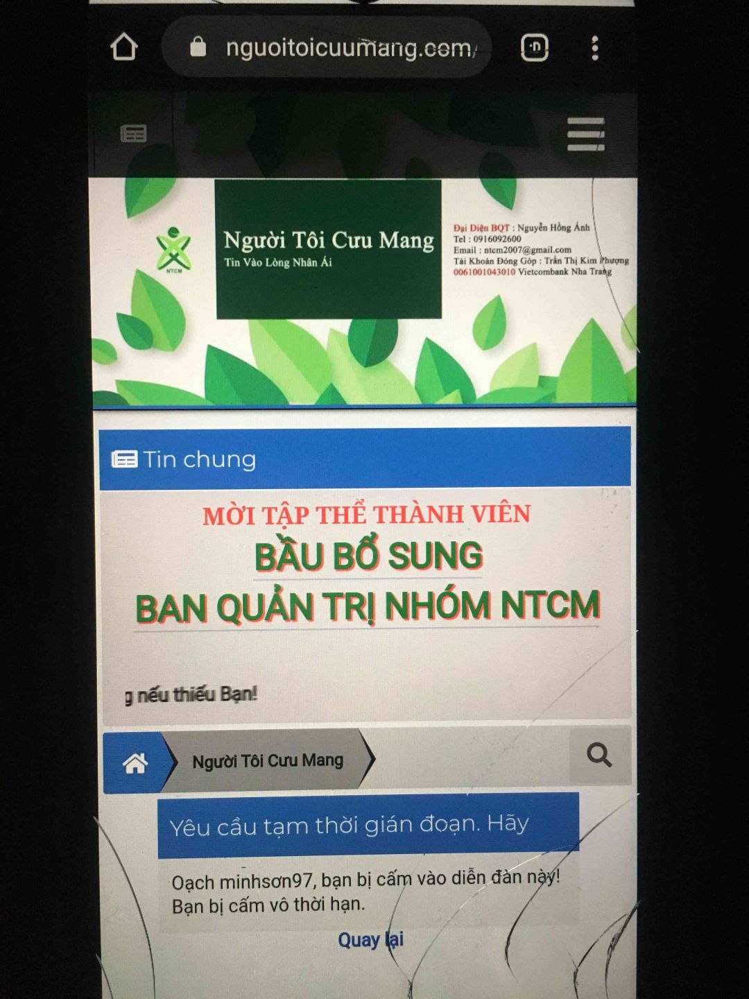 Trường hợp bị cấm như trên hình có khả năng đăng nhập quá nhiều lần sai mật khẩu mới bị cấm.