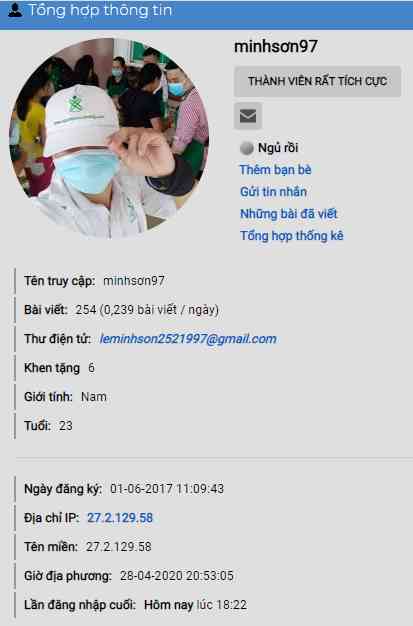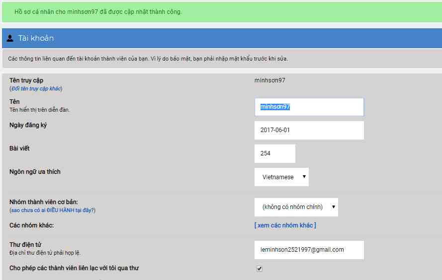 Tài khoản của em anh mới reset lại mật khẩu  để kiểm tra tài khoảng hiện tại số bài viết của em là 254.