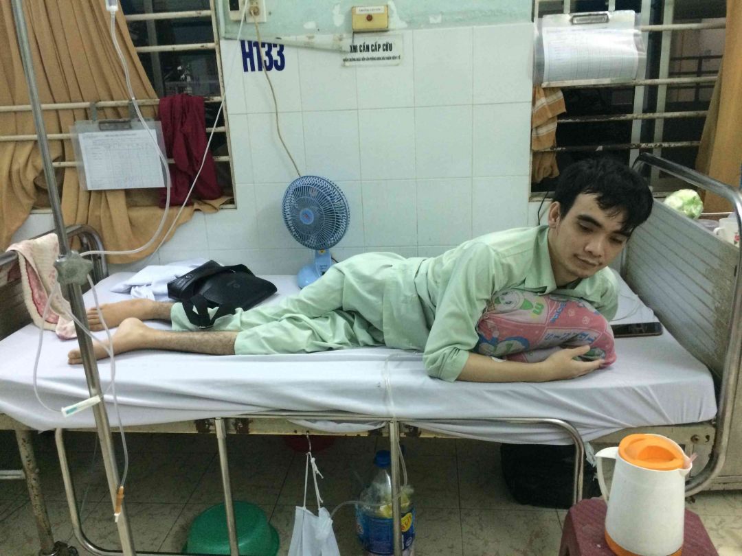 Nam đang nằm điều trị ở giường H133, phòng 55, Khu E, khoa tủy sống, bệnh viện Phục Hồi Chức Năng, Q8.