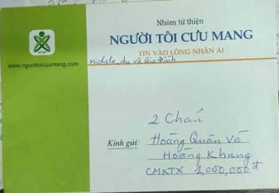 Hôm qua 6x lại ghé thăm để trao 1,000,000₫ CMKTX từ Michele_du và Gia đình gửi tới 2 cháu Hoàng Quân và Hoàng Khang nhưng vẫn chỉ gặp bác Hương vì chị Đoan Phương vẫn đi dạy chưa về.