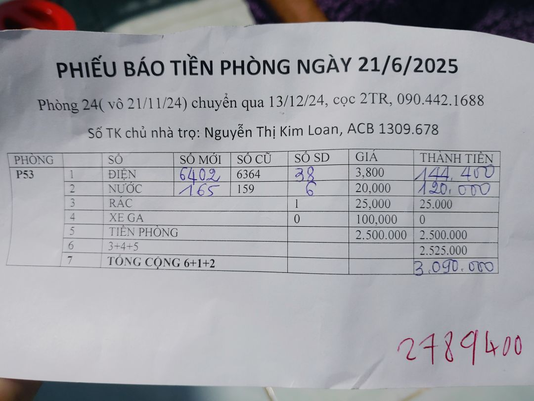 Tiền thuê trọ 2,500,000đ công thêm điện nước các thứ, tổng cộng hơn 3,000,000đ. Hàng tháng, con gái cô sẽ thanh toán tiền phòng cho chủ nhà trọ.