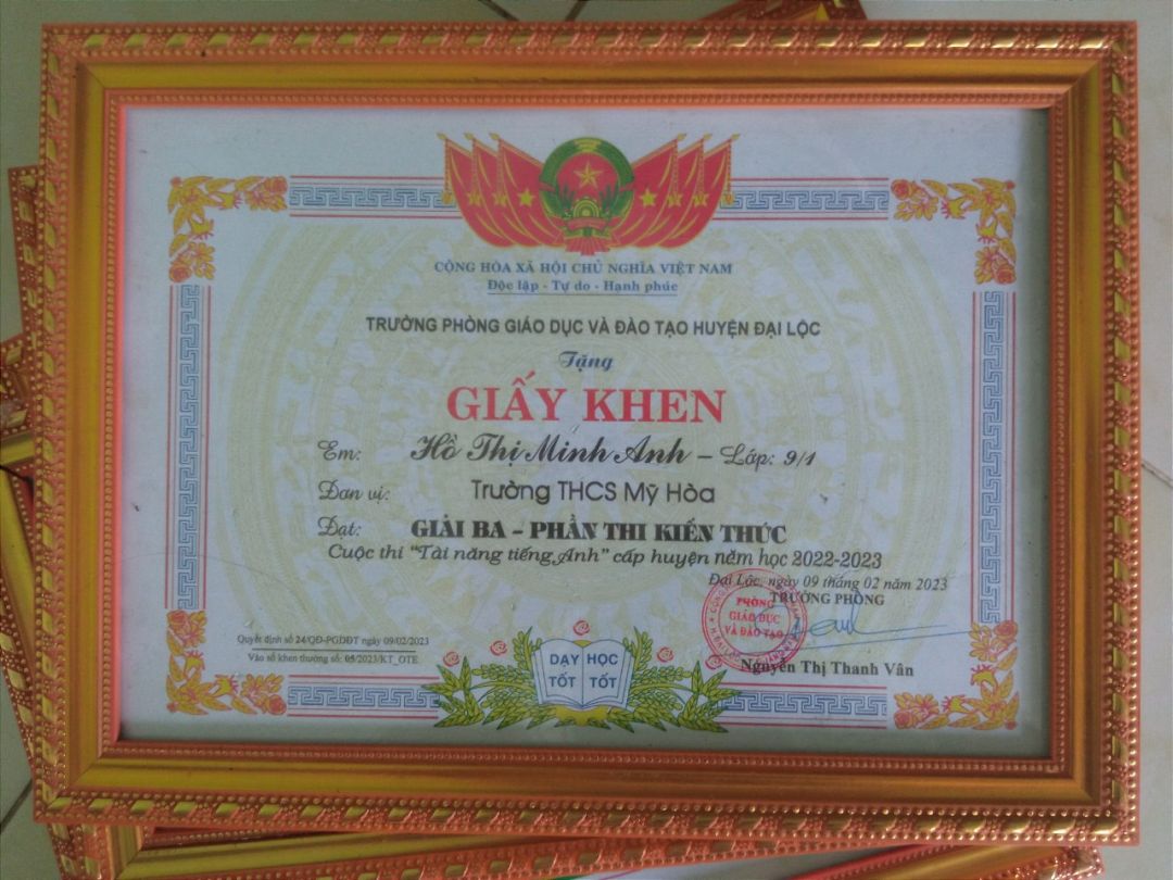 Nhân đây, con cũng xin chia sẻ một số thành tích của mình trong năm học vừa qua để mọi người cùng vui và thêm tin tưởng vào sự cố gắng của con ạ.