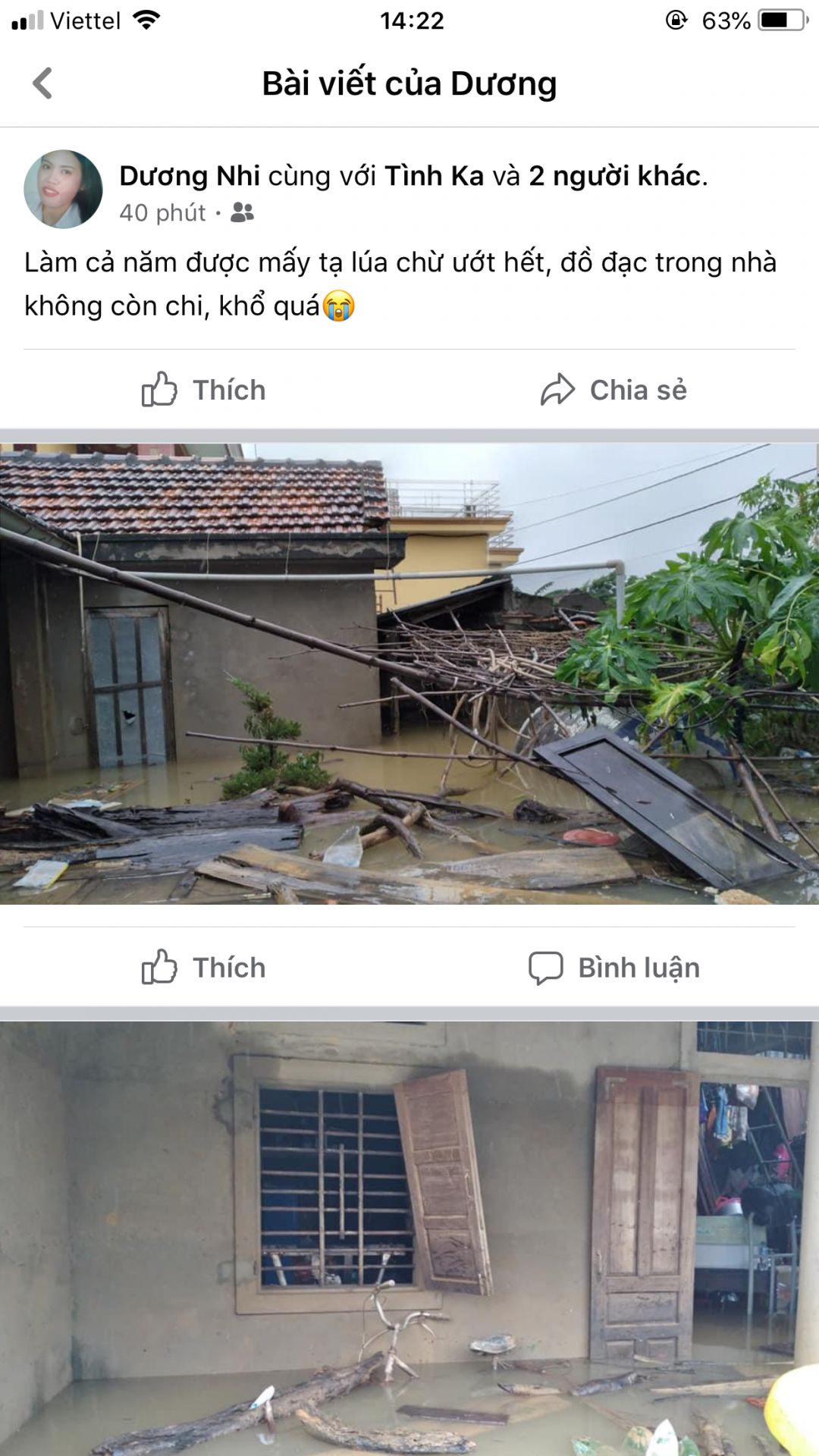 Xin chào cả nhà! Hiện tại trường hợp nhà bé Hồng Nhi ( nhân vật trong bài viết một mình nuôi 3 anh trai bị điên) mà nhóm NTCM chúng ta đã cưu mang . Kêu cứu bao nhiêu tài sản, thóc lúa đã trôi theo dòng nước không biết thời gian tới em lây gì nuôi anh và các con. Rất mong sự quan tâm của cả nhà.