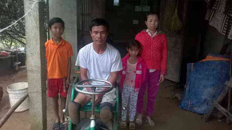 Hoàn cảnh: chú Thản 45 tuổi bị tật nguyền do bom đạn (cụt 2 chân và 1 tay) nên ở nhà, vợ thì hay đau ốm nhưng là người kiếm cơm cho cả nhà (làm thuê), có 2 con nhỏ đang đi học (lớp 5 và lớp 1). gia đình thuộc diện hộ nghèo
