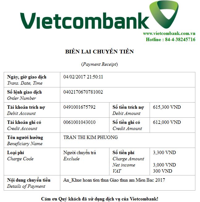 - Tên tài khoản: Trần Thị Kim Phượng.