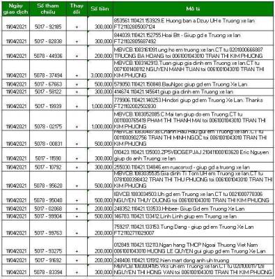 Kính nhờ Tổ điều phối chuyển 20,600,000 VND giúp tới: