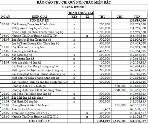 Tep gửi báo cáo thu chi nồi cháo Miền Bắc trong tháng 9 và tháng 10 như sau nhé.