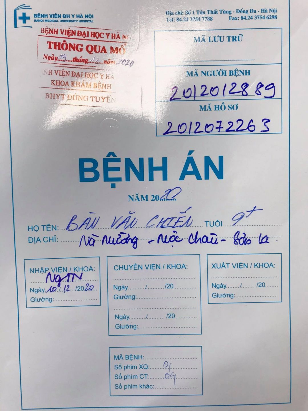 Khoản tiền 20 tr là khoản tạm ứng cho BV ĐH Y Hà Nội để cháu được nhập viện. Cháu đã có BHYT và hộ nghèo nên kinh phí phẫu thuật được giảm đi rất nhiều.