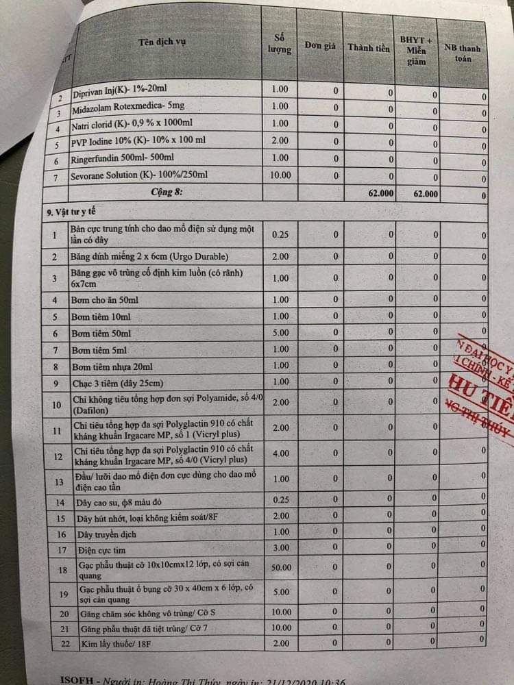 - Hỗ trợ thanh toán khoản tiền cho ca mổ là : 20.000.000đ (hai mươi triệu đồng)