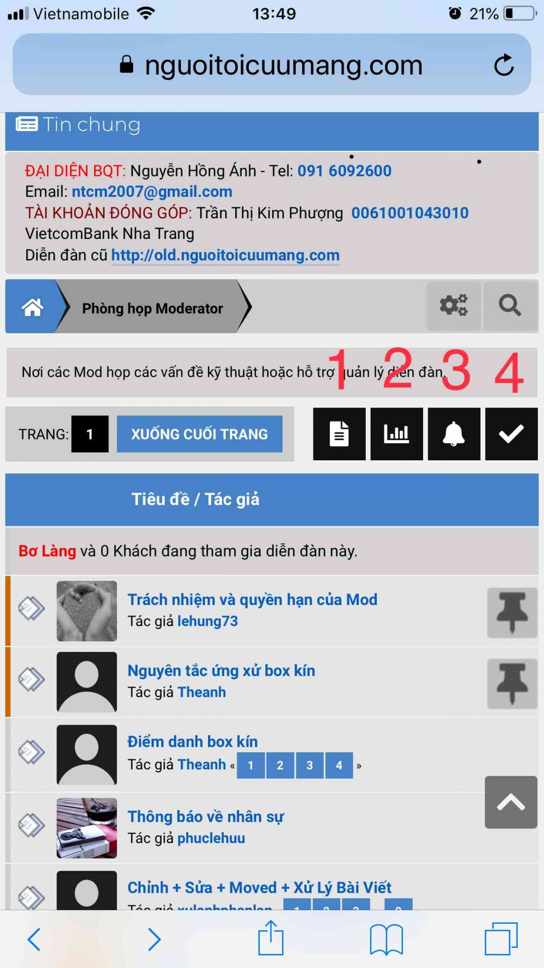 Tuỳ theo quyền thành viên hoặc smod khi đăng nhập sẽ thấy một số hoặc toàn bộ các quyền điều hành bài viết của mình hoặc của diễn đàn như sau: