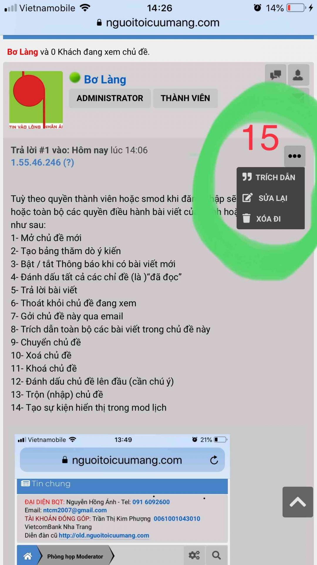 15- các lệnh trích dẫn trả lời này, sửa lại hoặc xoá. Tách bài viết ra khỏi chủ đề .....