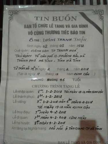 Tác giả Chủ đề: Hà Tĩnh - Anh Thiện - Cần hỗ trợ mai táng  (Đã xem 3228 lần)