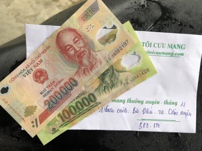 Trong khi chưa có sự chung tay của các bạn thành viên chúng ta tiếp tục xuất quỹ để CMTX Gia đình bác Luân 300,000đ/tháng từ tháng 10 đến hết tháng 12/2020 nhé