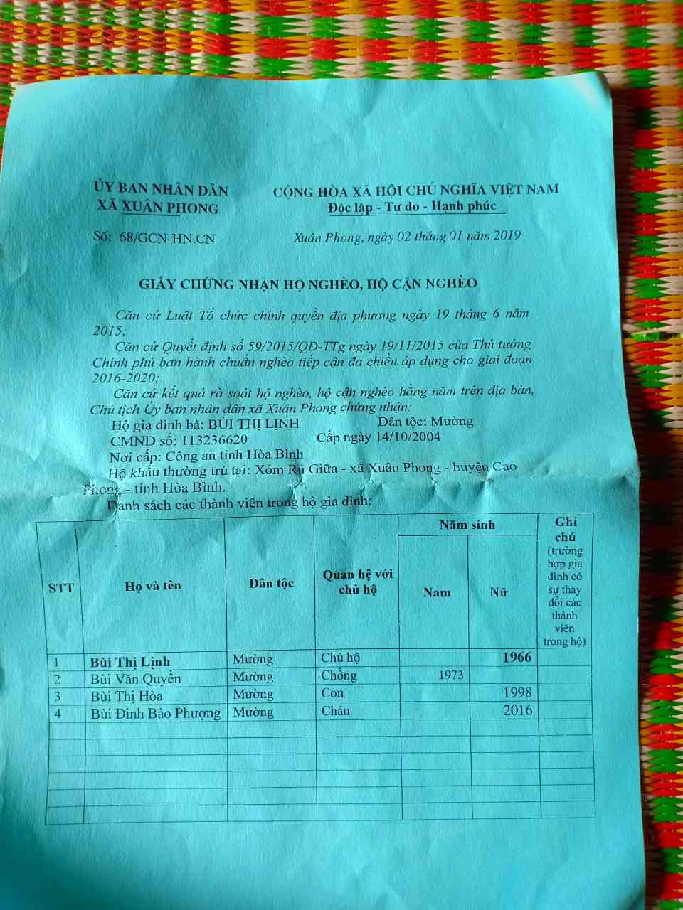 Em update giấy chứng nhận hộ nghèo, sổ hộ khẩu và số dt mợ của em Hoà đang chăm em ở BV nhiệt đới Đông Anh : 0359630915