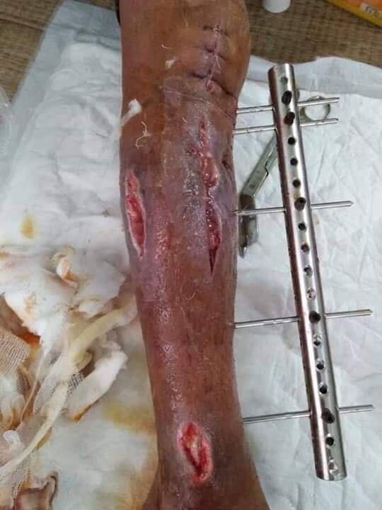 A bị nhiễm trùng xương và hoại tử, loét nên mùng 6 Tết a lại phải nhập viện. Theo bác sỹ điều trị cho a thì khả năng phục hồi giữ lại chân cho a là cực kỳ khó. Nhiều khả năng sau khi điều trị nhiễm trùng sau sẽ chuyển a ra Hà Nội để cắt chi. Hiện số tiền để điều trị các bác sỹ cũng chưa rõ.