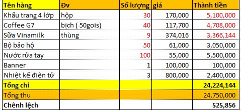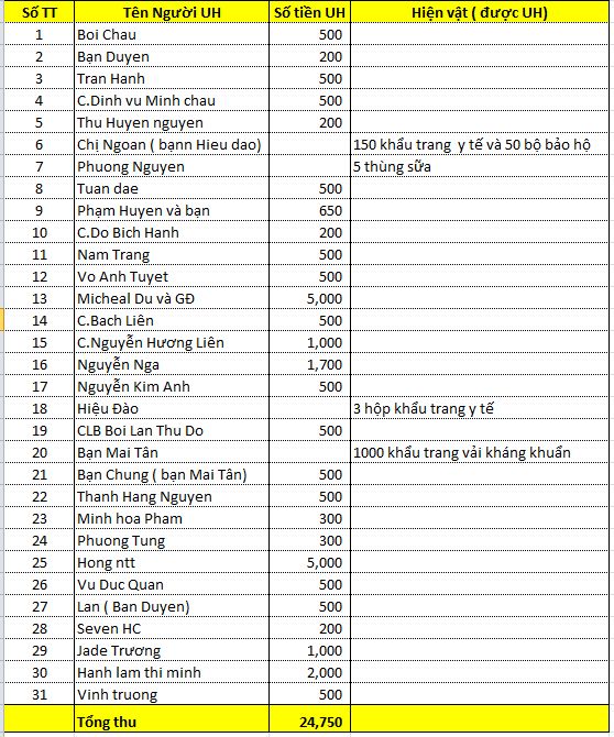 Duyen tuong cập nhập thu chi chương trình " ĐỒng hành cùng người lính " khu cách ly Hà Nam.