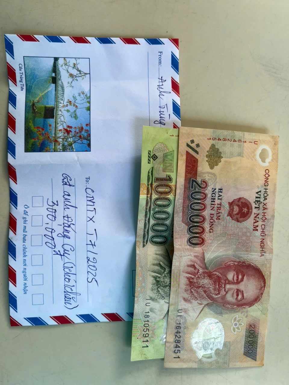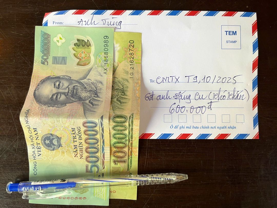 Anh Tùng gởi 600.000đ CMTX tháng 5,6 đến gia đình anh Đặng Cu.