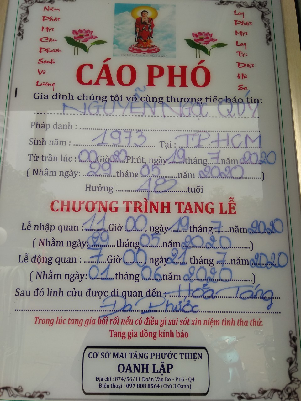 DucTai thống kê danh sách MTQ ủng hộ đám tang anh Quý đến 7h30 ngày 20 tháng 7.