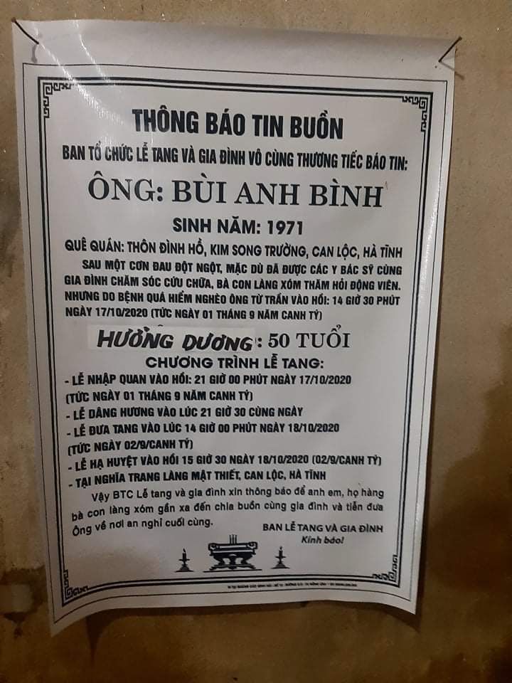 Rôi 14h25p trưa nay anh Bình đột ngột ra đi, ( anh bị đột tử)