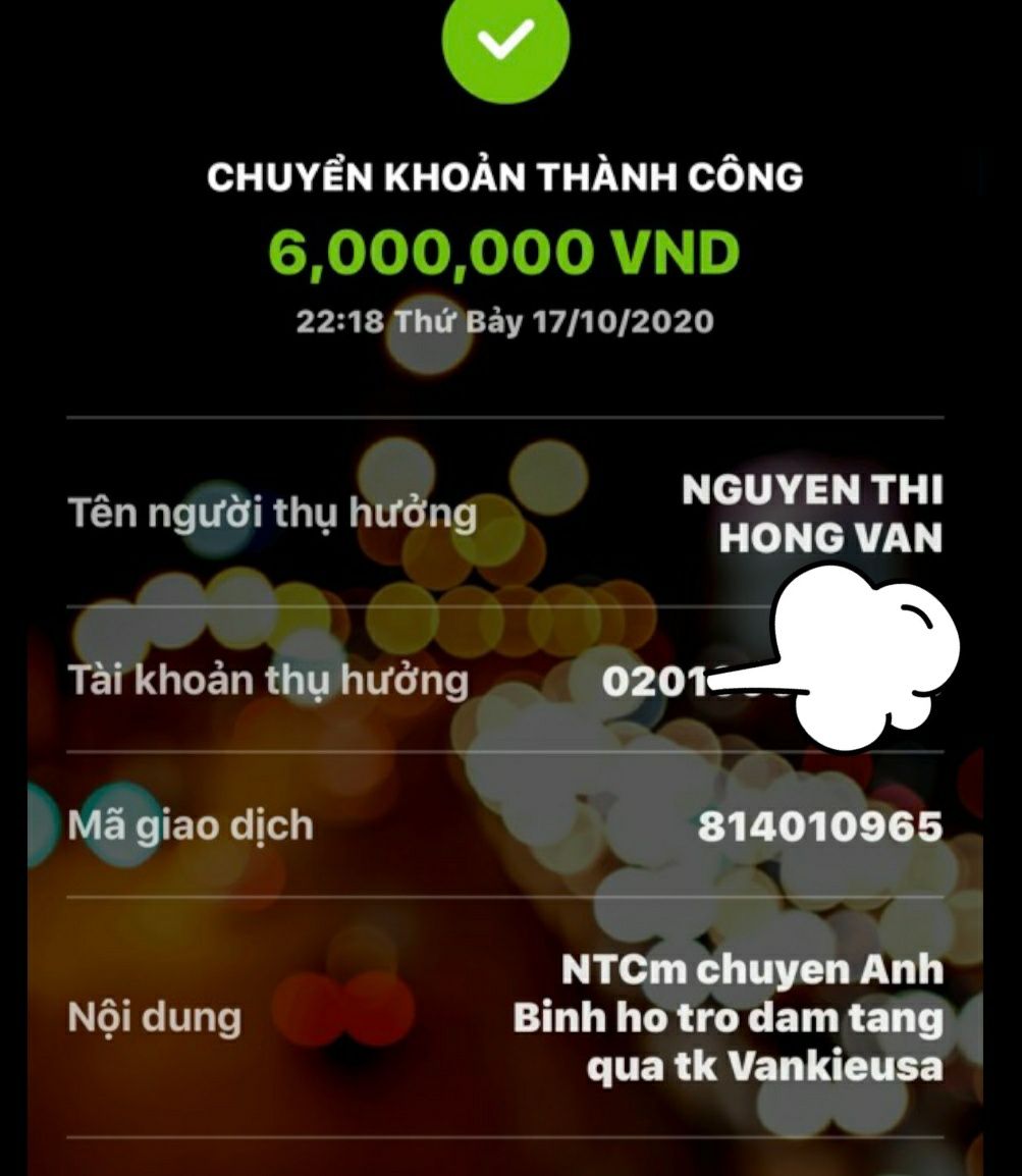 @Thocon : Em chuyển tới Vânkiêusa 6,000,000đ tiền hỗ trợ đám tang của anh Bình dùm nhé.