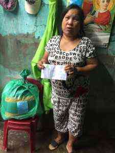 Trường hợp này các thành viên Huế đã trao nhu yếu phẩm và tiền tháng 10 đến gia đình chị Mai.