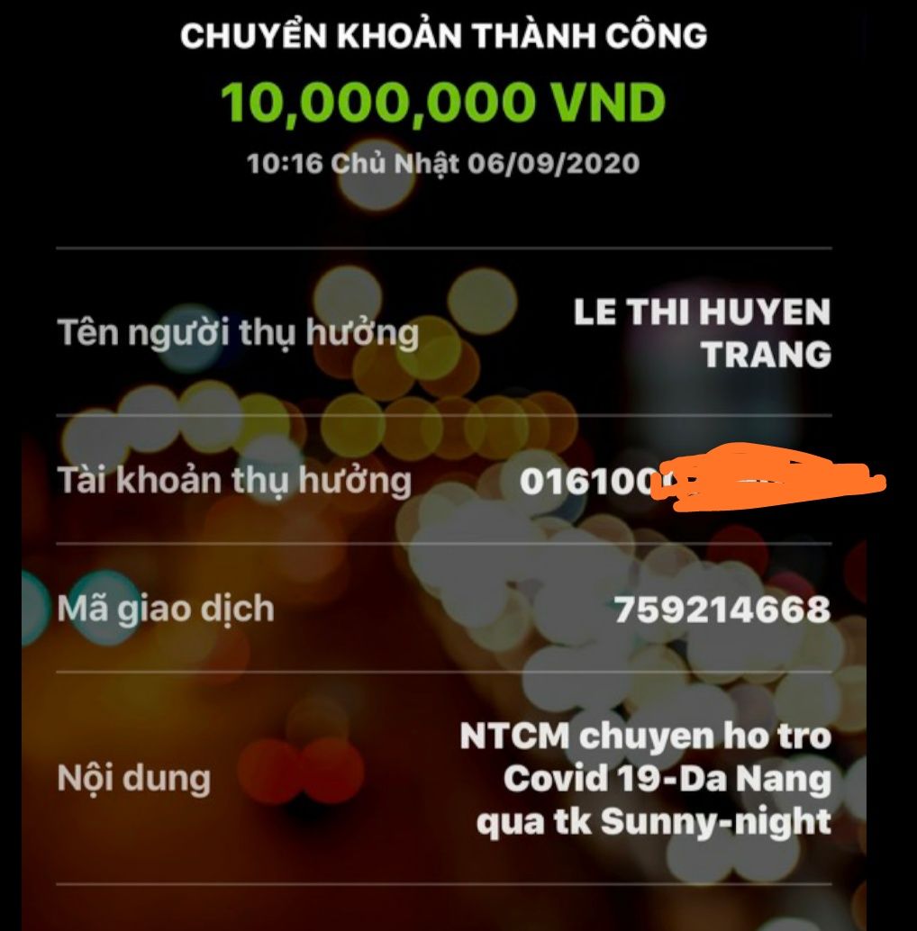 TRẦN THỊ KIM PHƯỢNG - 0061001043010 - VCB Chi nhánh Nha Trang - cú pháp Anh/chin UH COVID DN