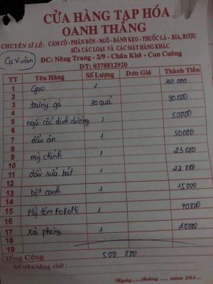 - Chị đồng ý trao nốt 3 tháng còn lại ( đã chuyễn cho các bạn Ngheeh An)-1500.000 phúng viếng cụ Xuân