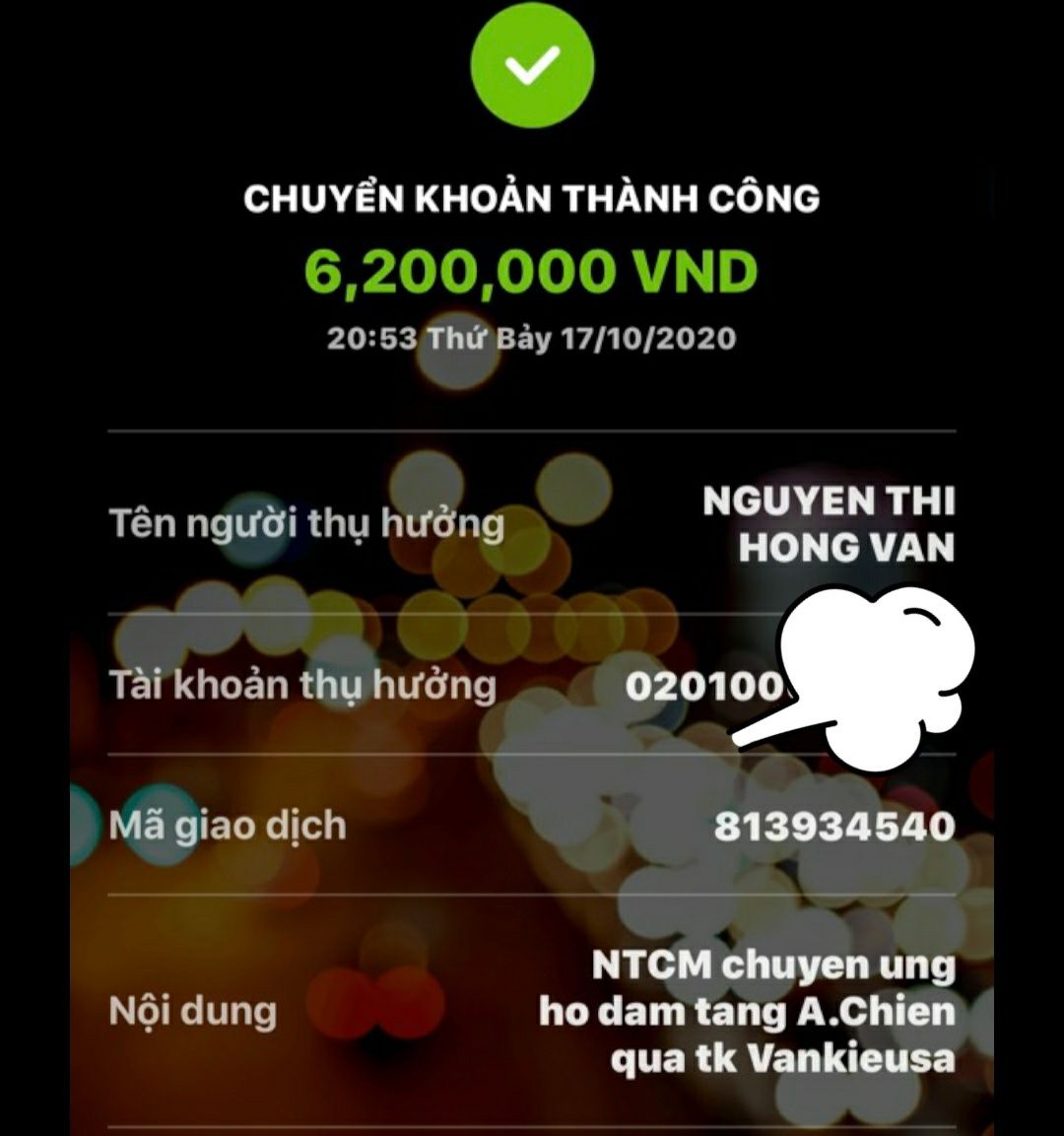 Thocon chuyển tiền hỗ trợ đám tang anh Chiến rồi các bạn nhé.