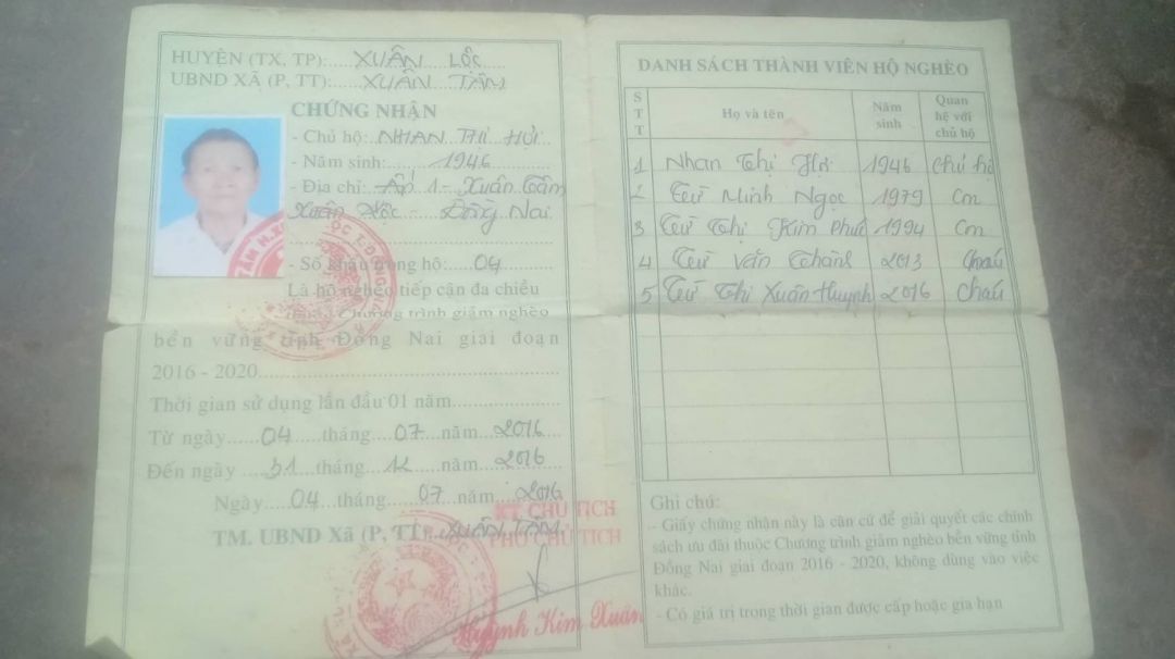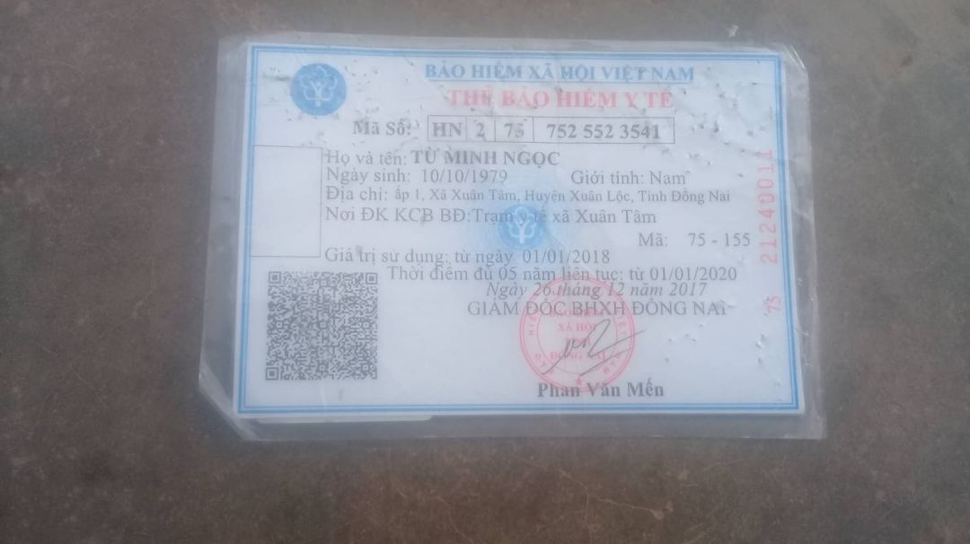 - Người thứ 2 là anh Từ Minh Ngọc bị bệnh , hàng ngày phải đi bệnh viện nên cũng không có việc gì làm . Anh Ngọc có BHYT nên đi khám bệnh cũng được miễn phí vì bảo hiểm hộ nghèo . Nghe anh Ngọc nói giờ chỉ đi khám ở BV huyện thôi vì không có đủ kinh phí đi SG nữa , với lại khi đi ở BV huyện ăn uống hàng ngày cũng nhờ cơm cháo từ thiện . Giấy tờ khám bệnh ở BV Gia Định nghe anh Ngọc nói là không có , lúc gặp em Lethidan và các bạn ở SG hình như cũng không có . Bây giờ chỉ có giấy tờ ra viện ở BV huyện Xuân Lộc mà thôi chứ không có giấy tờ gì khác .