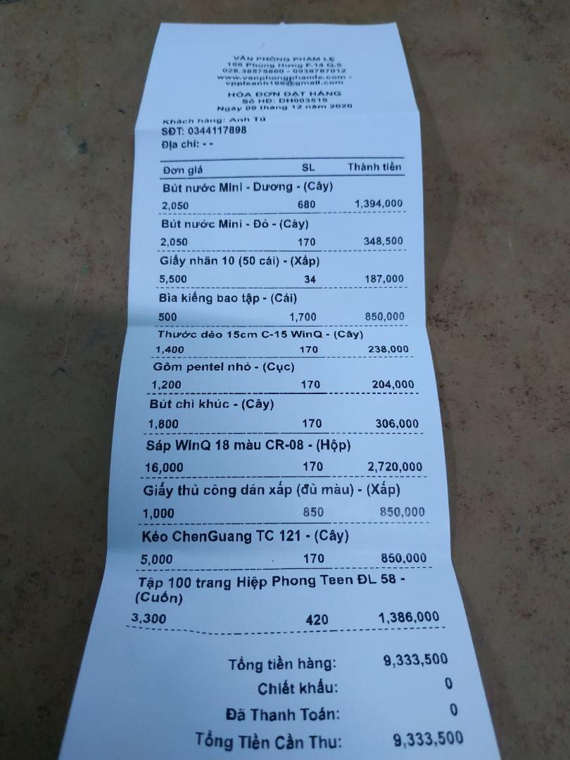 Vì mua các phần quà dụng cụ ở TP HCM có giá thành rẻ hơn nên em đã nhờ letuantu mua giúp. Và letuantu _ Quán cơm SG đã ứng tiền mua giúp từ Tp HCM đã gửi ra Huế với tổng số tiền 9.333.000đ có ảnh hóa đơn kèm theo bài. Rất mong tổ điều phối quan tâm chuyển trả lại phần tiền đã ứng mua các phần quà đến với letuantu.