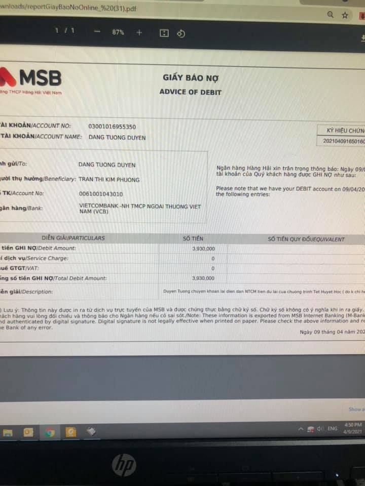Cảm ơn các anh chị. ThaiDzuy đã báo Tổ điều phối làm lệnh chuyển tiền!