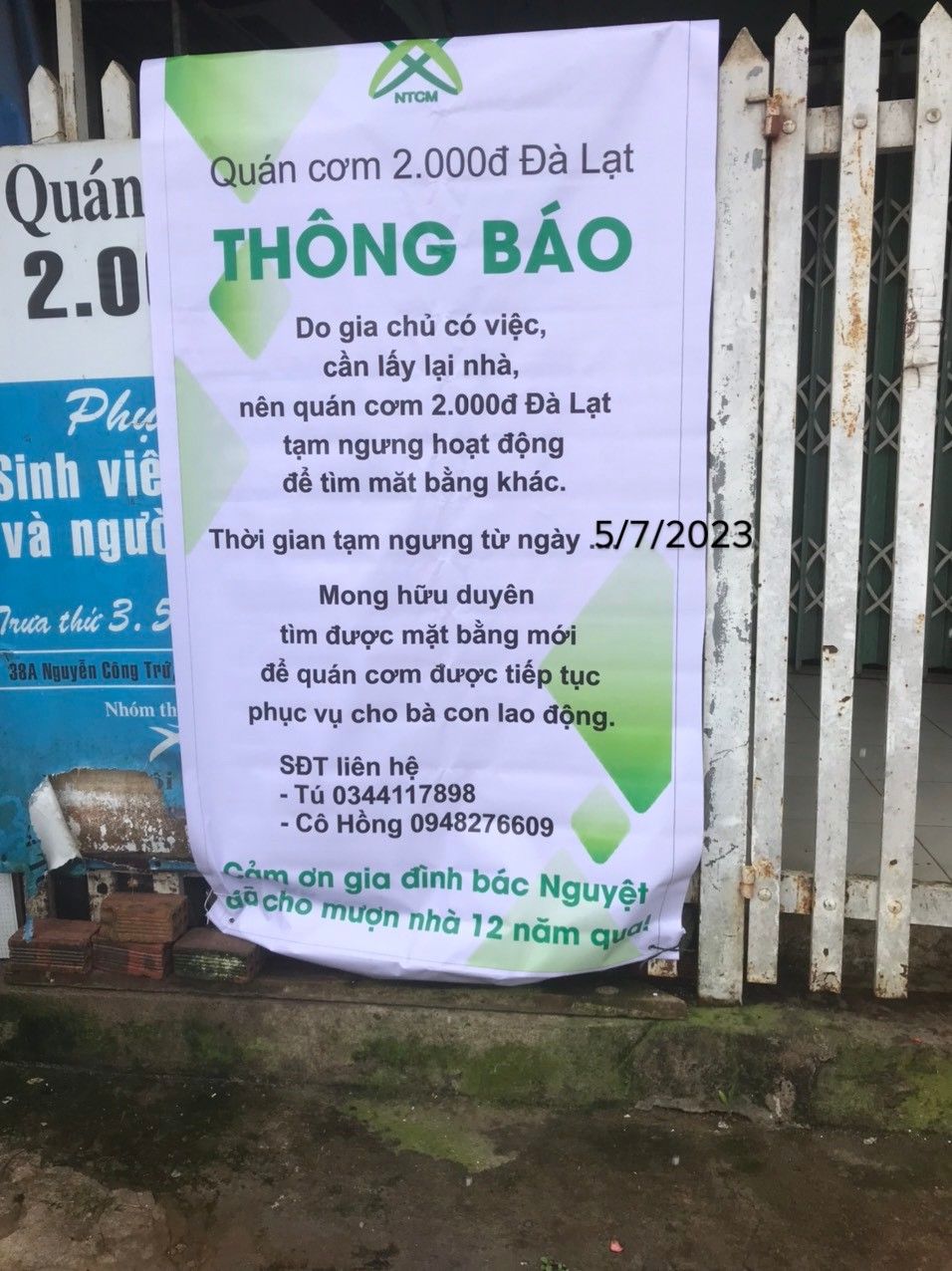 Chủ nhà đã chốt ngày để lấy lại nhà, quán cơm 2000đ Đà Lạt sẽ bán 1 ngày thứ 3 (4/7) nữa rồi bắt đầu tạm dừng để tìm mặt bằng thuê mới.