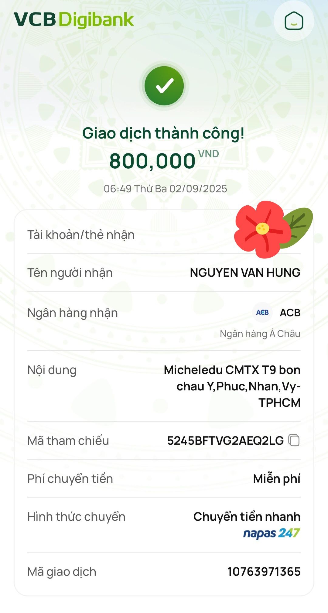 Ông ngoại của các cháu cũng nhận được lì xì của nhóm cô Thảo gửi các cháu.