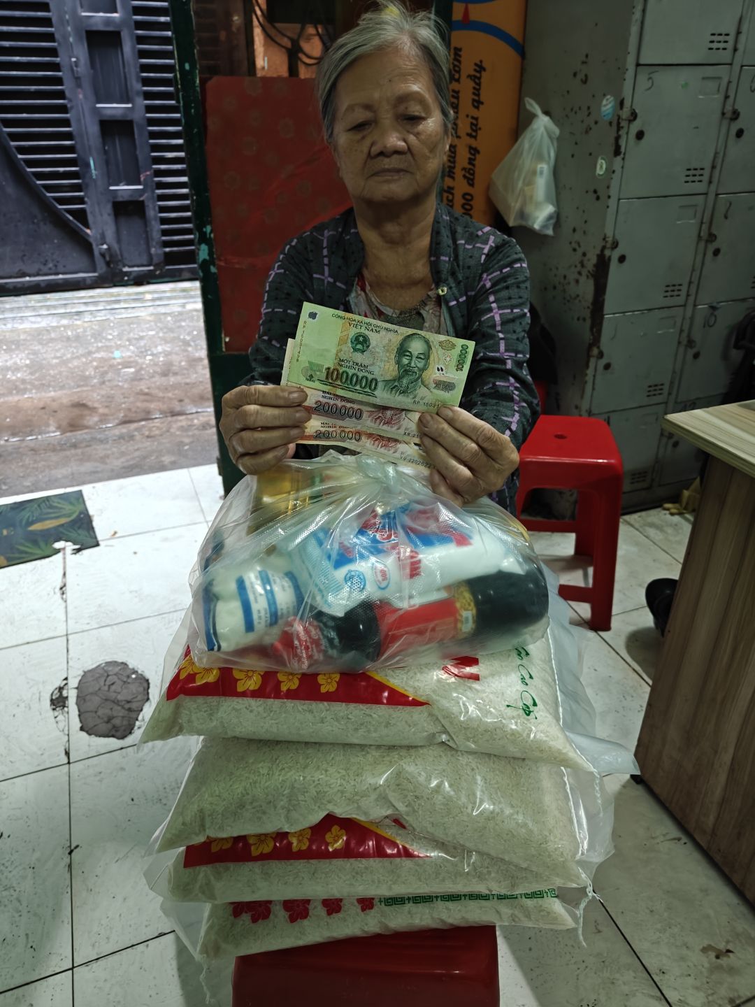 Cháu cập nhật hôm nay 4/2/2026 bà của Anh Thư đã nhận được nhu yếu phẩm của tháng 1/2026 rồi ạ!