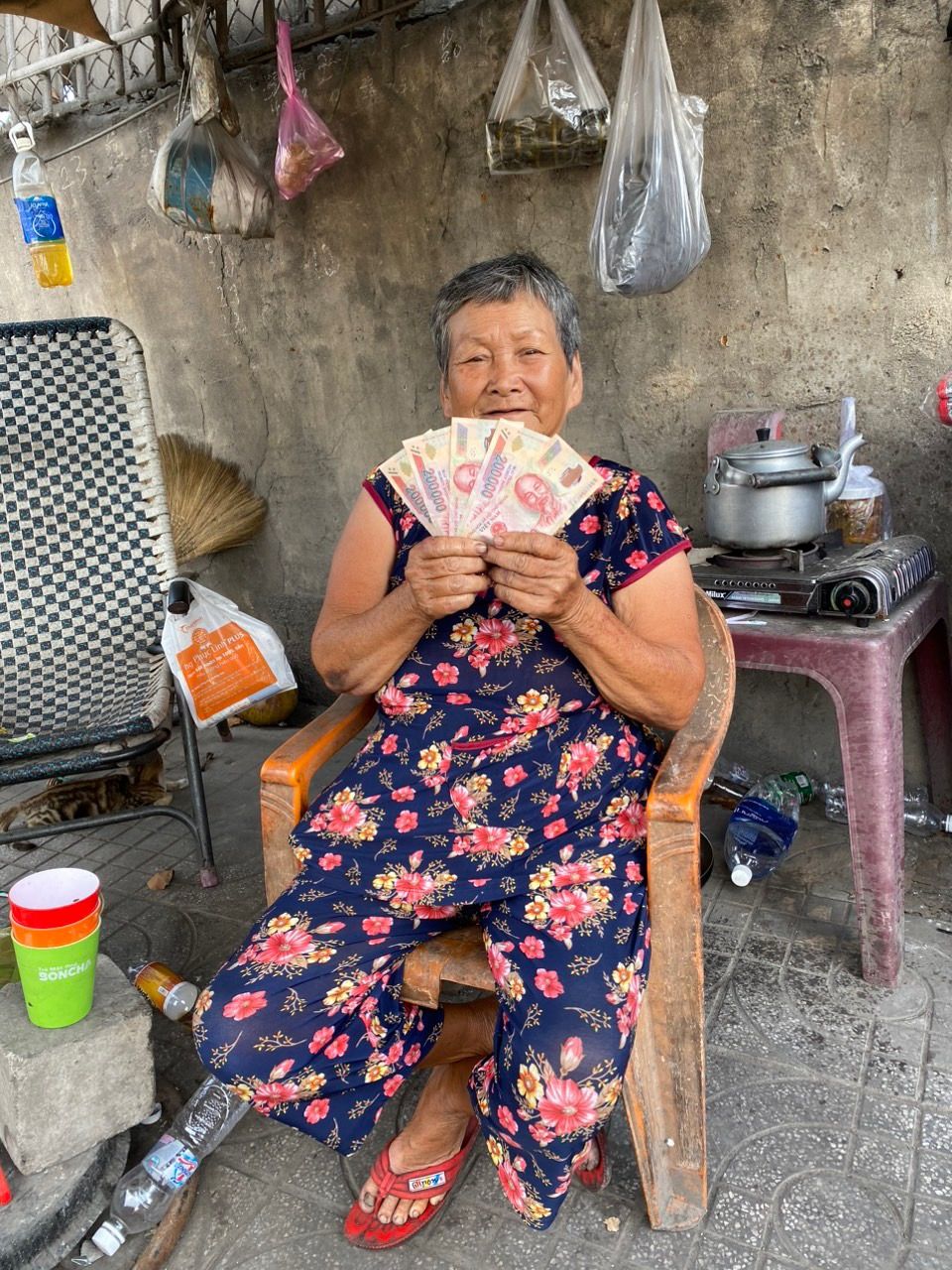 Lần này ghé thấy cụ yếu đi nhiều vì theo bà nói đường bà tăng cao, các khớp chân bị tê đau nhức , quán nước bây giờ chủ yếu do bé thứ 2 bán, chứ mình bà không bán nổi nữa. Bà nói e lớn thì có đi làm nhưng không được nhiều.