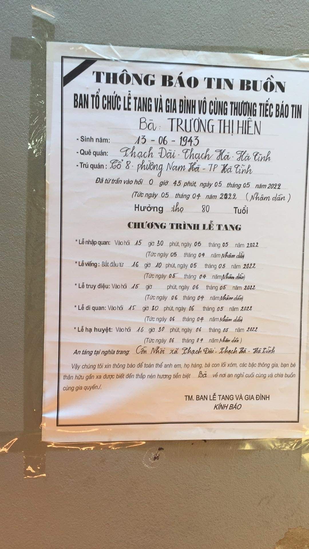 ( Hiện tại vẫn chưa có ctrinh tang lễ cụ thể)