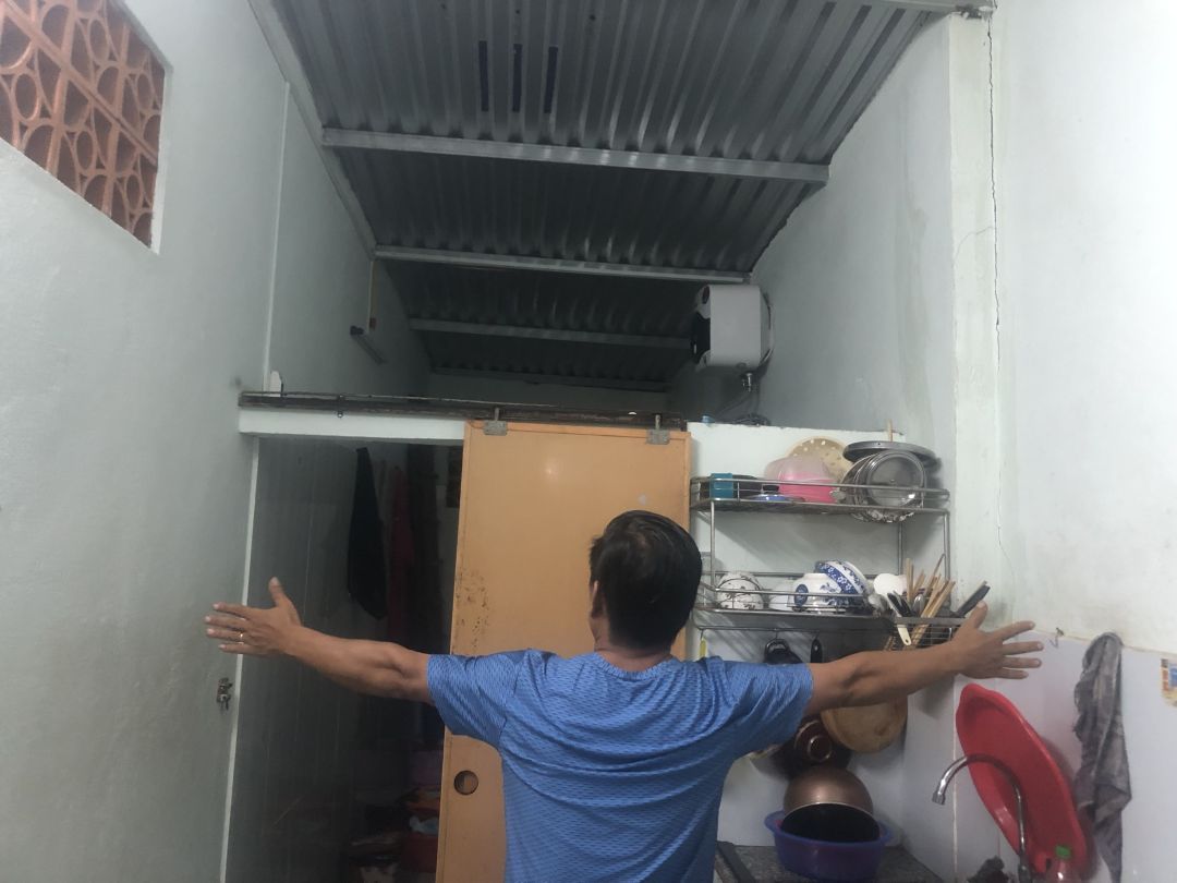 Căn nhà chỉ 40m2  được che bên nhà thờ sát hộ thành hào trong xóm nghèo tạm cư thuộc Phú Bình cũ (nay là Thuận Lộc). Bề ngang căn nhà chỉ nhỉnh hơn sải tay của thành viên chúng ta (khoảng 1.6m). Căn nhà được con ông làm nghề Sơn ở Hà Nội tích cóp về đóng gạch nền và Sơn lại cách đây ba năm nên cũng sạch sẽ dù nhỏ xíu.