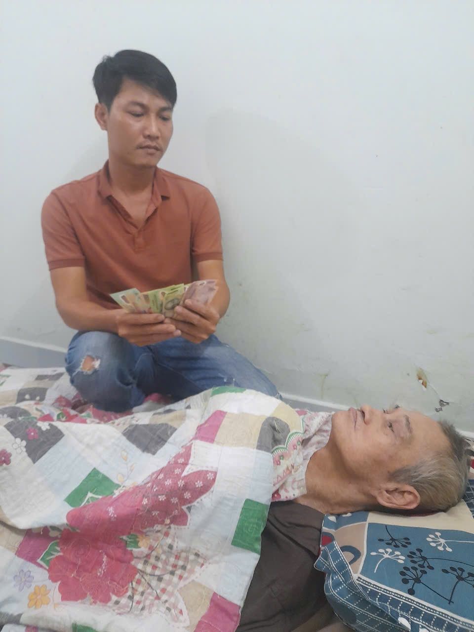 Sức khoẻ Cụ vẫn không tốt hơn. Cụ vẫn nằm một chỗ và anh Tuấn con trai cụ chăm sóc từ ăn uống đến vệ sinh.