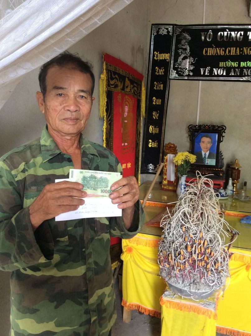 Trưa nay LNLB đã đến thăm và trao số tiền 300.000₫ dư sau khi đóng bài kêu gọi MTTT em Nhâm đến tay bố mẹ để ông bà hương khói cho em khi vợ và con em đã quay trở lại Sài Gòn làm việc. Qua đây bố mẹ em đã gửi lời cảm ơn đến các mạnh thường quân đã giúp đỡ gia đình trong lúc khó khăn.
