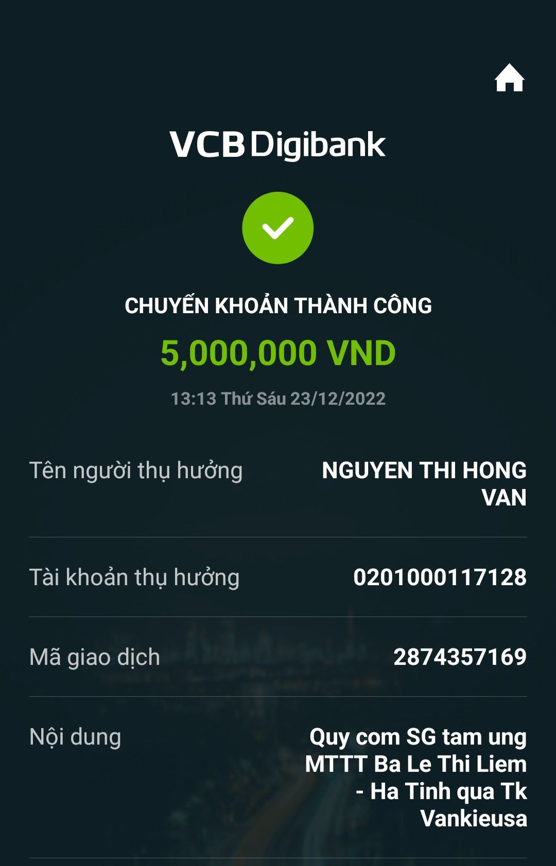 @trangvitgioi : Em chuyển tới Vânkiêusa 5,000,000₫ các bạn đã chung tay giúp đỡ đám tang của bác Liêm dùm nhé.
