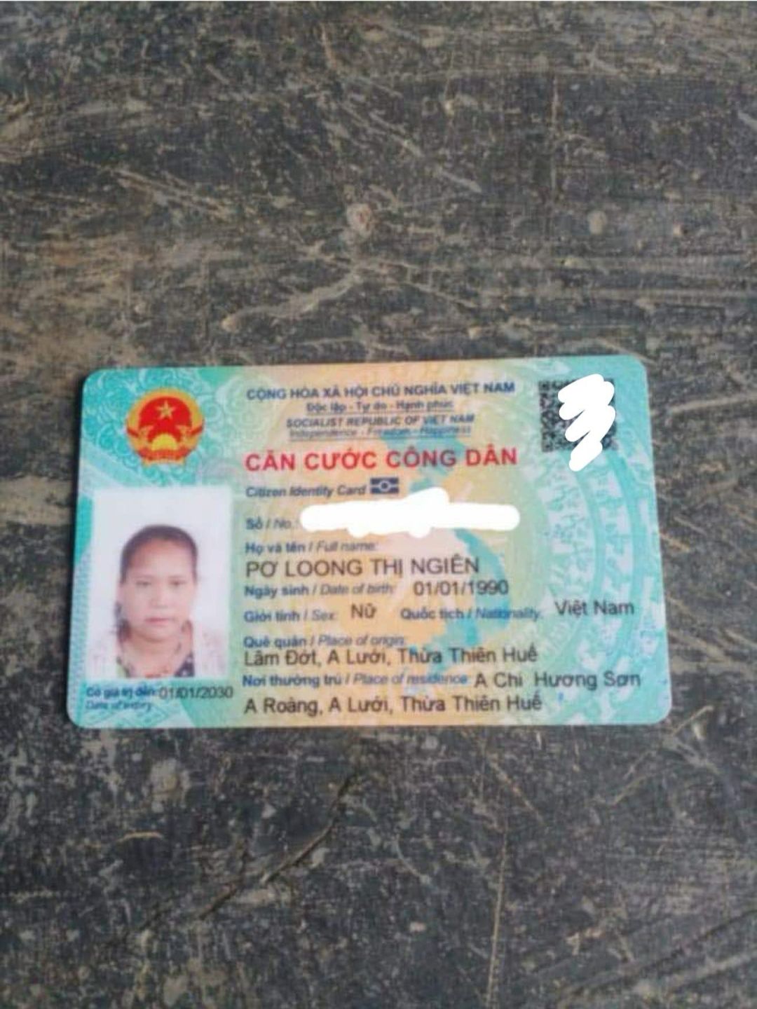 Chồng chị tên: Hồ Văn Nhê, SN: 1989, trú tại thôn Achi - Hương Sơn, Xã A Roàng, huyện A Lưới, Thành Phố Huế; 2 người con đều còn nhỏ, đứa đầu tên: Hồ Thị Minh Hợi, năm nay học lớp 6;đứa thứ 2 tên: Hồ Thị Minh Hiền, năm nay lớp mẫu giáo lớn. Sđt liên hệ với gia đình: 0326384006