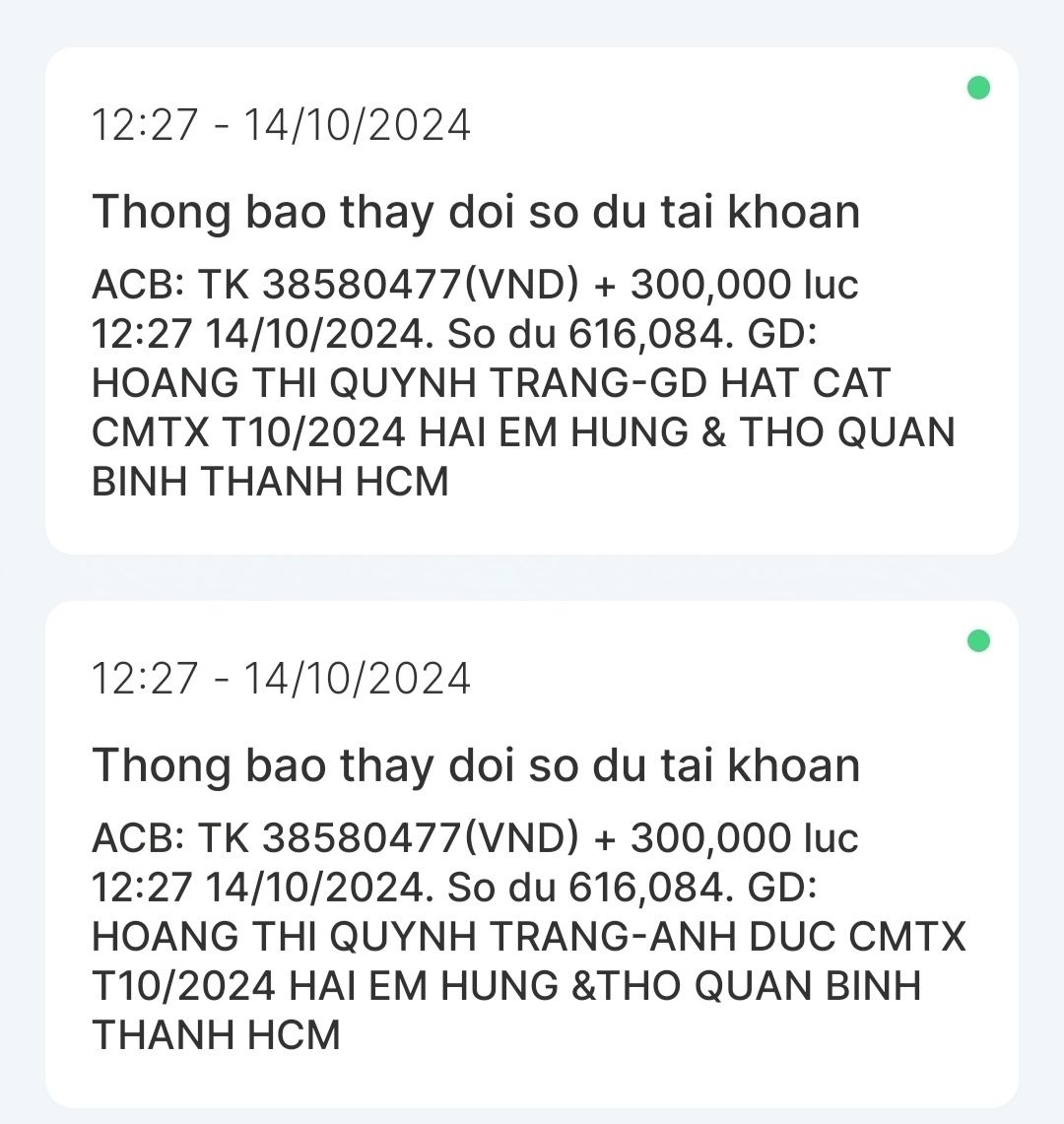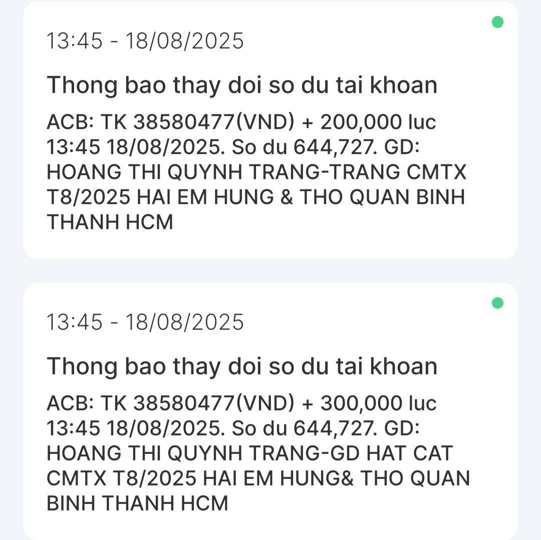 Dạ con xin chào cả nhà ạ. Con là Nguyễn Hữu Thọ con đã nhận được CMTX T5, CMTX T6, CMTX T7, CMTX T8 và nhu yếu phẩm con xin cảm ơn GD HAT CAT, cô Trang và quán cơm 2.000₫ đã hỗ trợ anh em con. Dạ trong tháng 6,7 vừa qua thì con cũng vừa thi xong và cũng có kết quả dù cố gắng nhưng điểm không như con mong muốn nhưng con cũng không nản chí con cũng tận dụng đà học thì con cũng học thêm nhiều thứ như học thêm tiếng anh hay con tìm hiểu và học thêm về ngành khoa học dữ liệu con đang theo đuổi. Thời gian qua thì con cũng có đi làm quán cà phê con làm cũng khá ổn và học thêm nhiều kĩ năng như giao tiếp với khách với chủ hay với các bạn làm chung con cũng có học hỏi được cách làm matcha latte ạ hihi. Mà do ông ngoại lớn tuổi, hay quên với nhà không có ai đưa đón bà ngoại đi làm, coi chừng nhà nên con nghỉ để ở nhà phụ giúp và học ạ. Con có tranh thủ thi chứng chỉ MOS PowerPoint và con cũng đậu được đại học nhưng còn thiếu học phí và nhờ có chương trình Heartbank đầu tư cho tương lai và mọi người hỗ trợ nên con có thể tiếp tục giấc mơ đại học. Con xin cảm ơn cả nhà rất nhiều ạ.