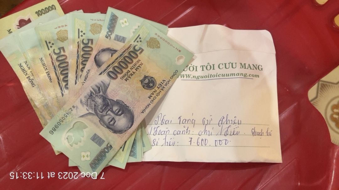 Vân Kiêu Sa xin cập nhật trao hỗ trợ MTTT cho gđ chú Hiền số tiền 7.600.000